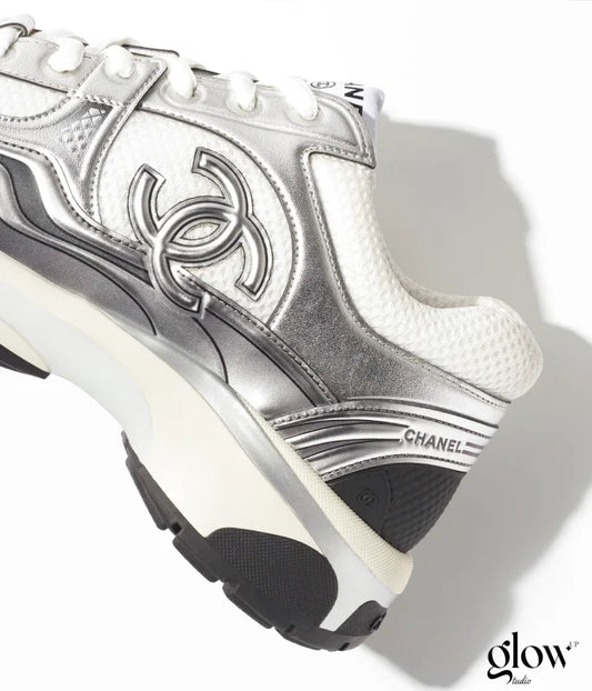 Chanel - Baskets Tissu & laminé Blanc & argenté
