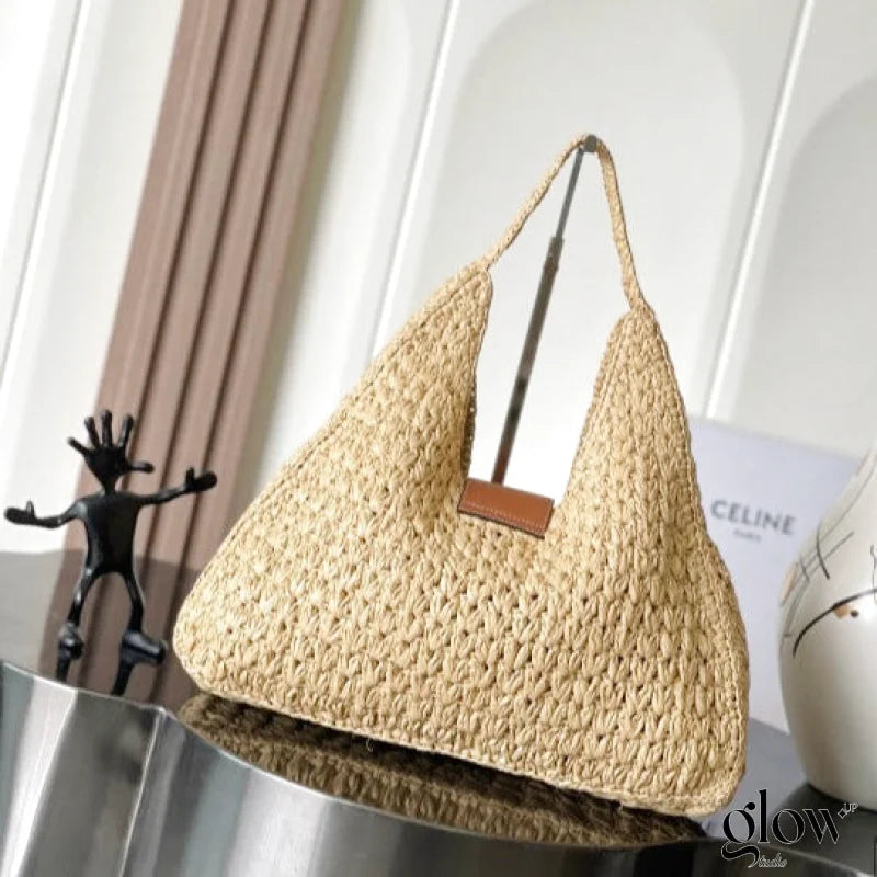 CÉLINE – Classic Panier Cabas Triangle en Raphia & Cuir de Veau