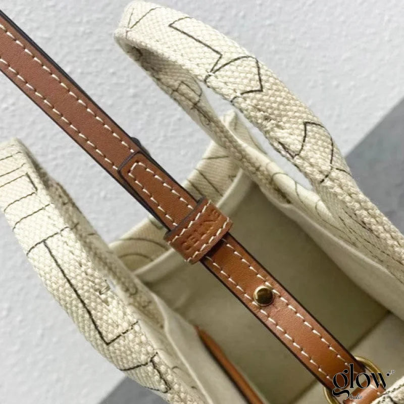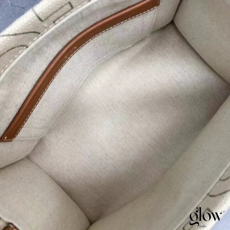 Ce cabas élégant combine un textile rayé beige et noir à des finitions en cuir de veau, pour un style à la fois minimaliste et raffiné. Léger, souple et facile à porter, il s’adapte parfaitement à un usage quotidien avec une touche de luxe discret.