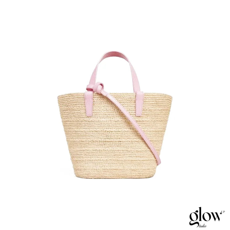 Céline - Panier Classic petits modèles en raphia souple et veau rose