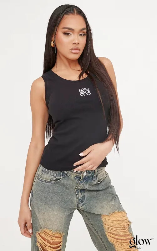 Pourquoi les débardeurs Loewe Anagram en coton Noir mettent le paquet niveau allure ?