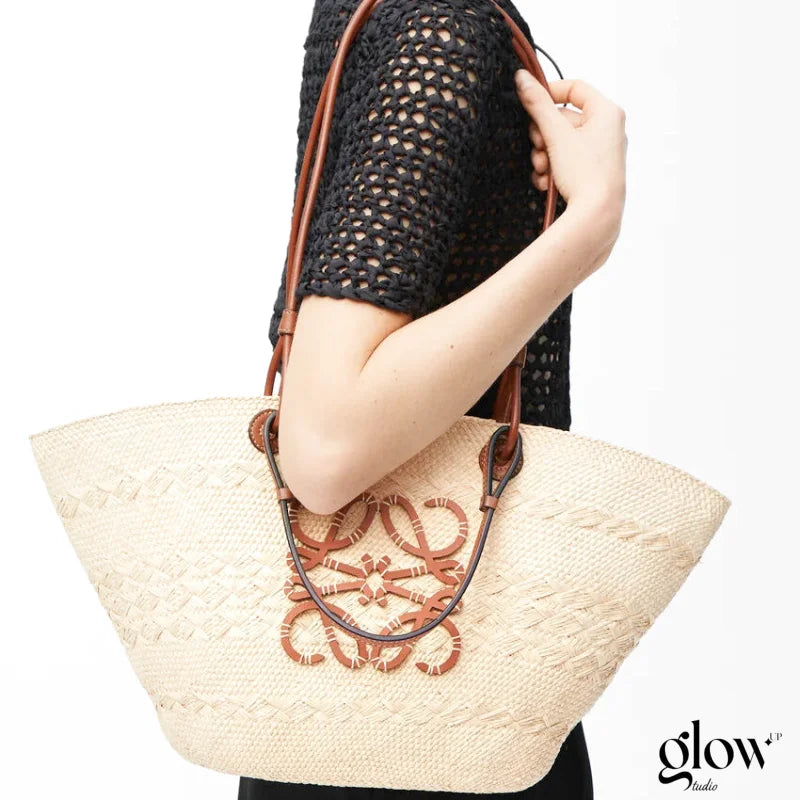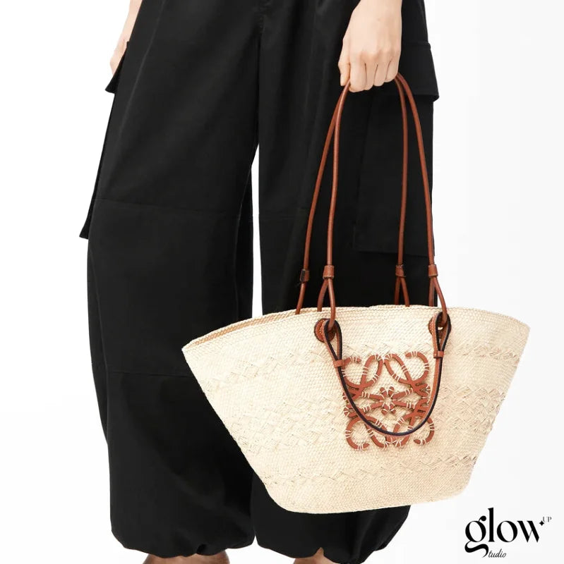 Pourquoi craquer pour les Loewe Paniers Anagram en palmier Iraca et cuir de veau ?
