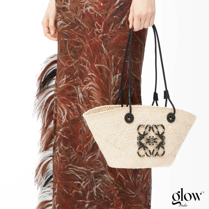 Le Loewe Anagram en palmier Iraca & cuir de veau séduit par son mariage naturel et son originalité, parfait pour celles qui veulent sortir du lot avec douceur et caractère.