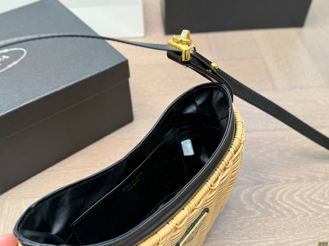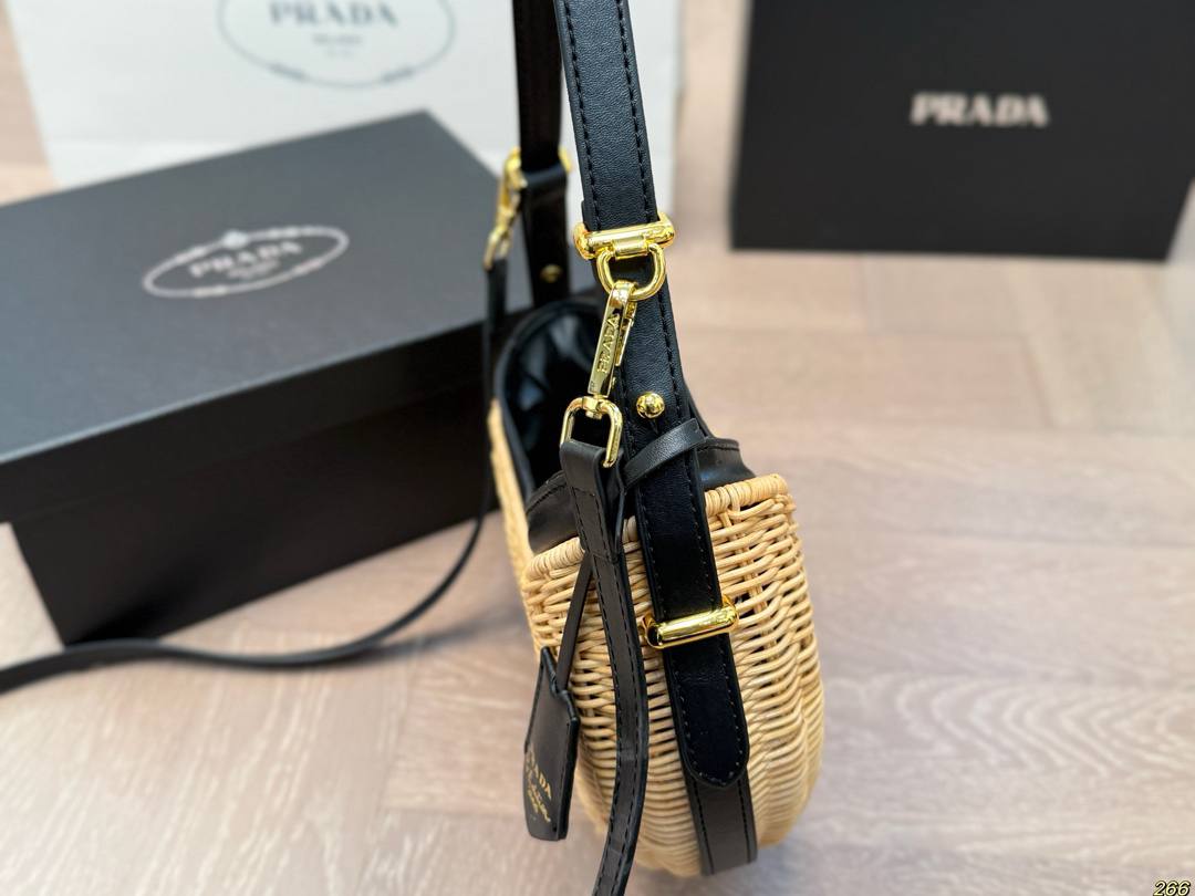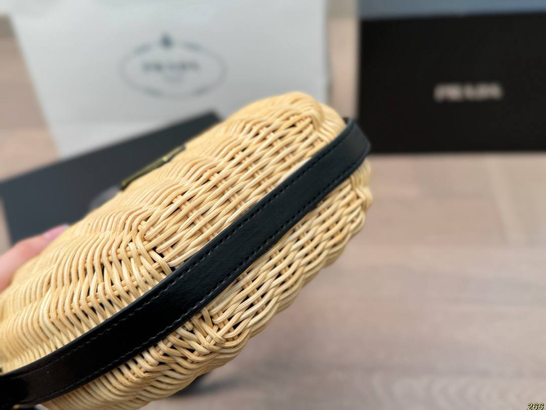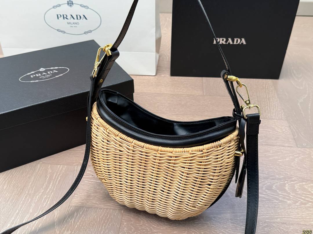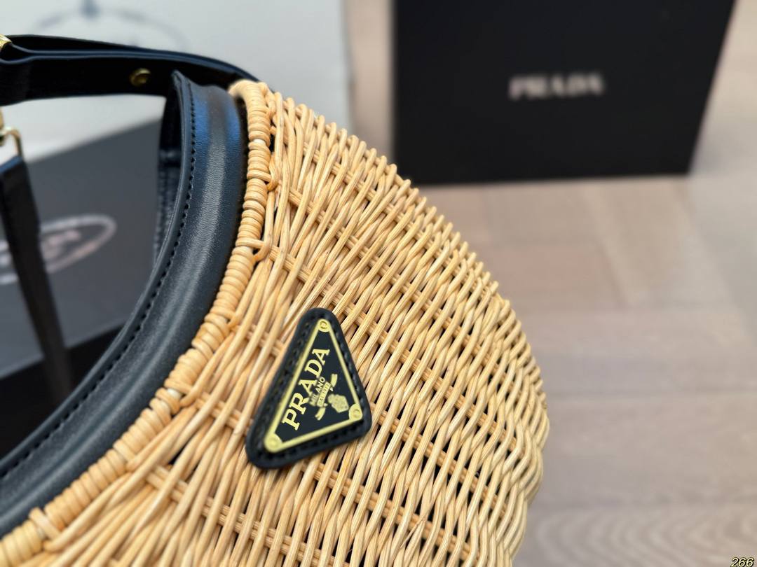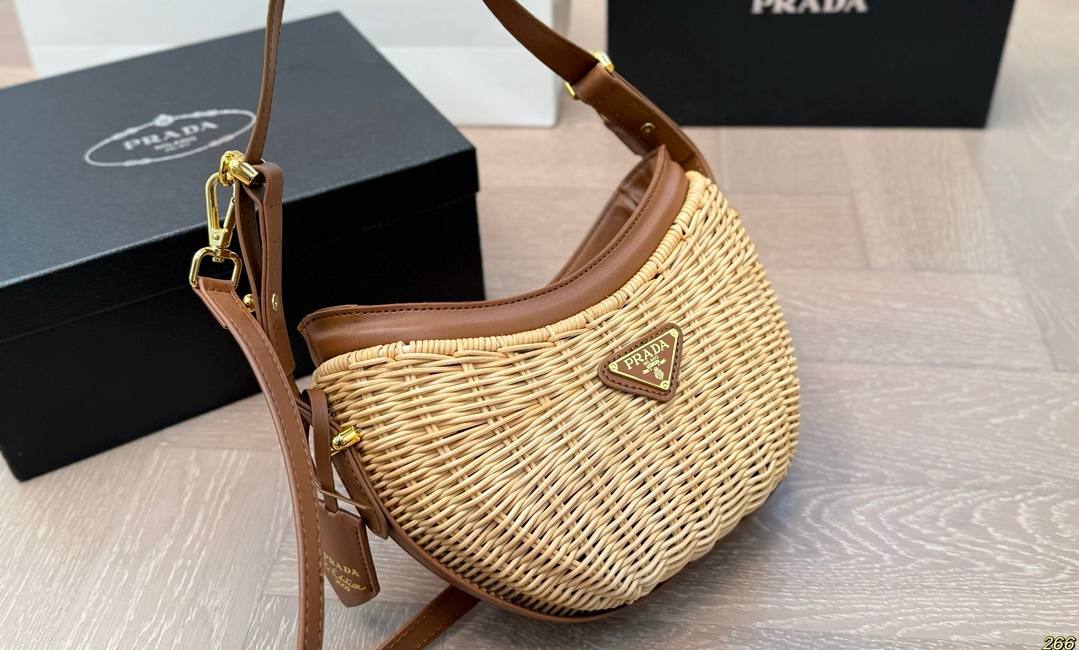 Le *Sac Prada Arqué en osier et cuir* fait rayonner les amatrices de looks frais, de détails vintage et de vibes ensoleillées, même quand il pleut dehors.