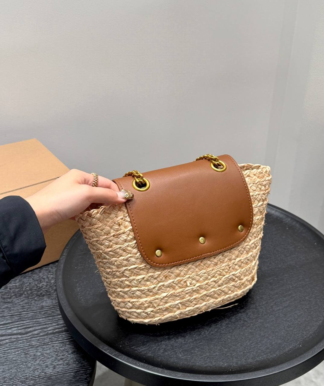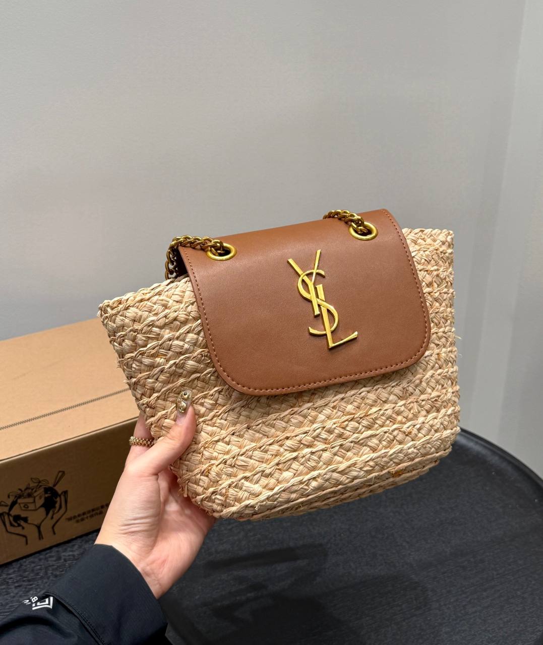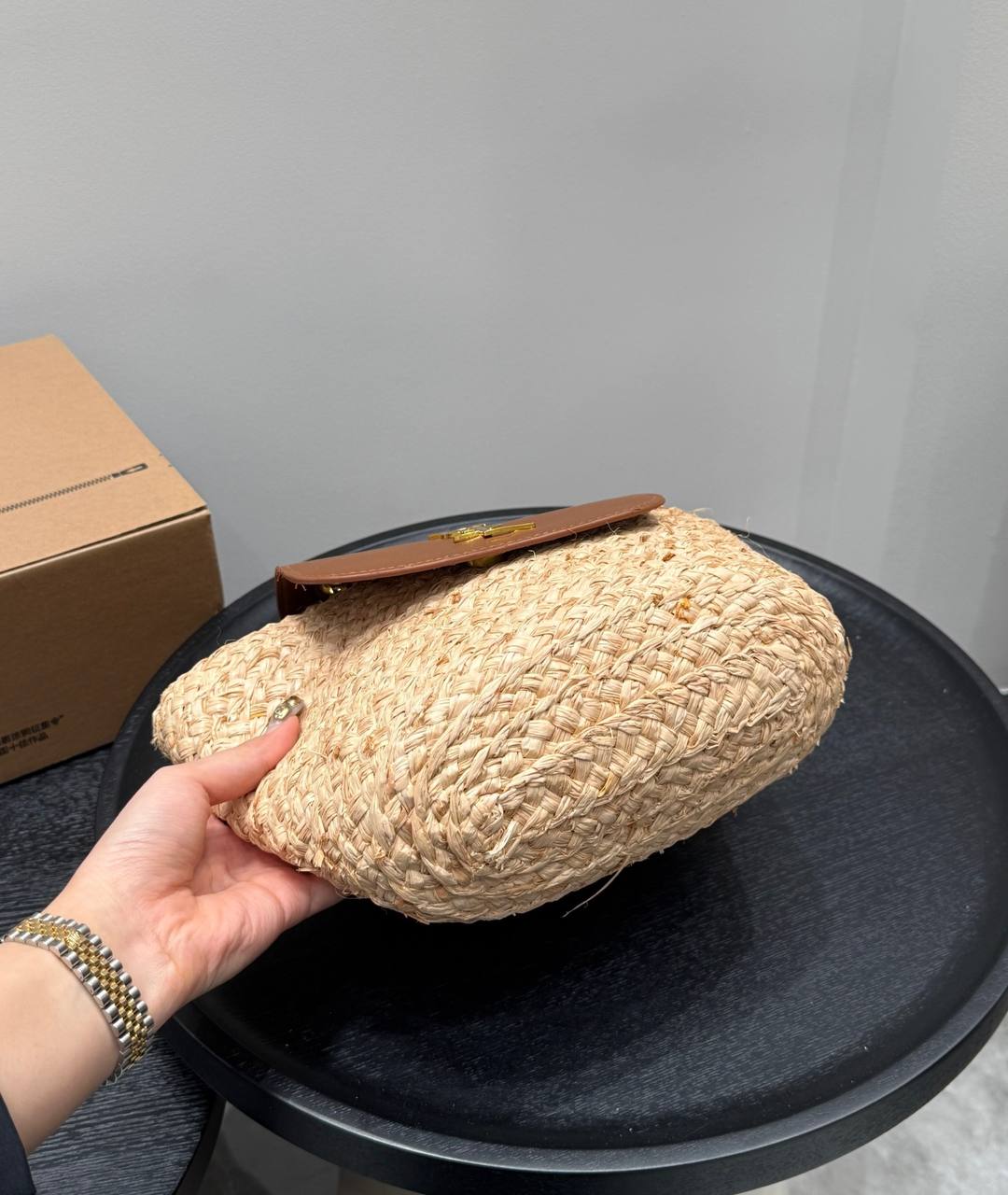 Alors déjà, *si tu sors les poubelles avec ce sac*, t’as clairement raté ta vocation d’influenceuse. Le *YSL Sac porté épaule en raphia avec finitions en cuir*, c’est un peu comme une pastèque avec un autocollant Dior : ça n’a rien à faire là, mais c’est beau. Il marie la *texture rustique du raphia* à des touches de cuir *ultra quali*, et te file une silhouette d’été même quand t’as pas mis d’autobronzant. Et vu sa taille mini, t’es obligée de virer tout ce qui sert à rien (bye les tickets de caisse de 2022). Bref, il est mignon, il est pas relou, et il sent les vacances même en métro.