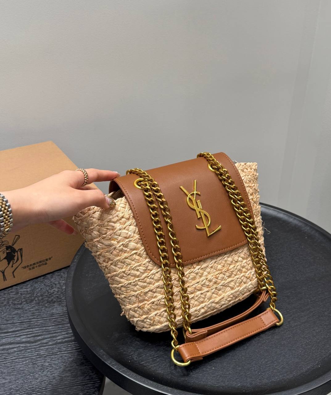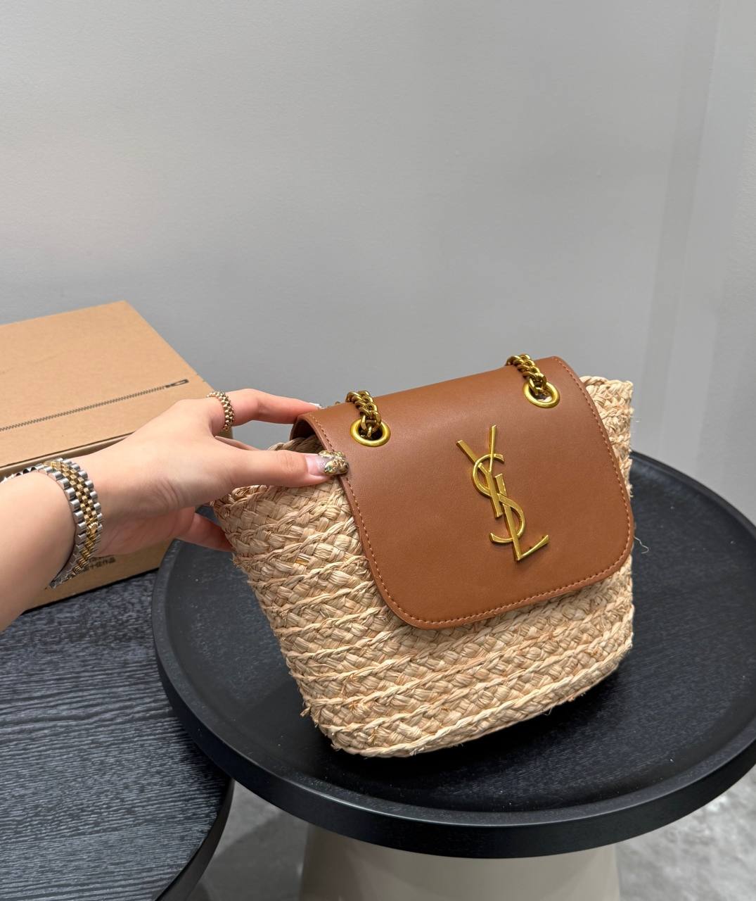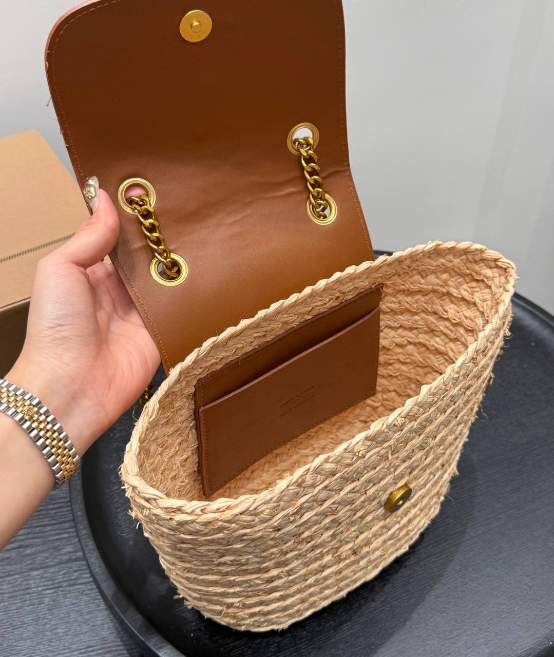 Alors déjà, *si tu sors les poubelles avec ce sac*, t’as clairement raté ta vocation d’influenceuse. Le *YSL Sac porté épaule en raphia avec finitions en cuir*, c’est un peu comme une pastèque avec un autocollant Dior : ça n’a rien à faire là, mais c’est beau. Il marie la *texture rustique du raphia* à des touches de cuir *ultra quali*, et te file une silhouette d’été même quand t’as pas mis d’autobronzant. Et vu sa taille mini, t’es obligée de virer tout ce qui sert à rien (bye les tickets de caisse de 2022). Bref, il est mignon, il est pas relou, et il sent les vacances même en métro.